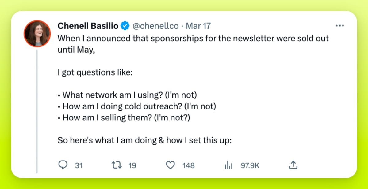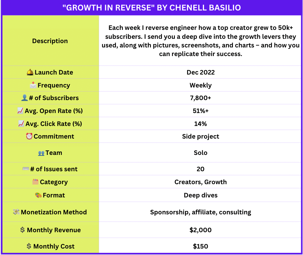 Today, we’re welcoming Chenell Basilio, the creator of Growth In Reverse, a great resource for newsletter creators. Every week, she shares a deep dive into how a top newsletter creator has grown to over 50k+ subscribers.
